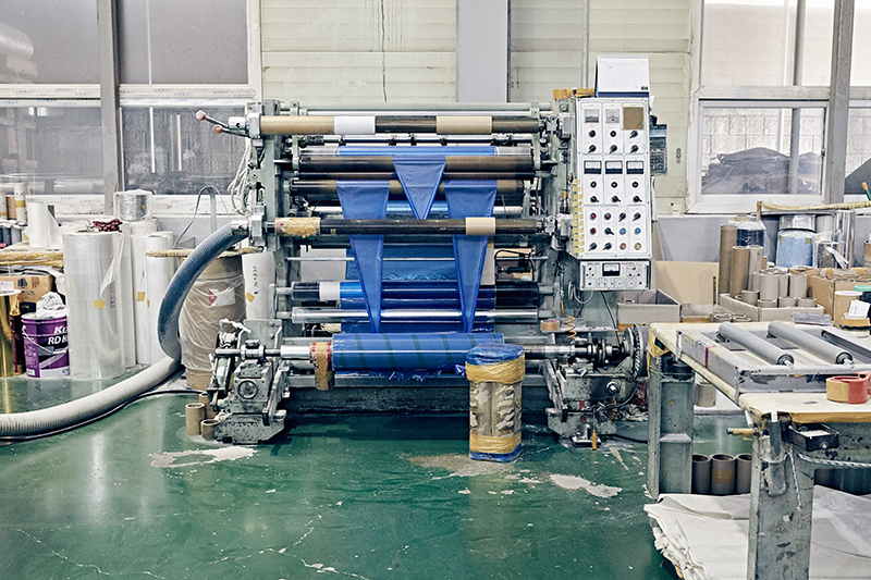 폴리에틸렌 레진을 T자형 형태의 다이스를 사용해 필름 종이 등의 원단에 도포 합니다.